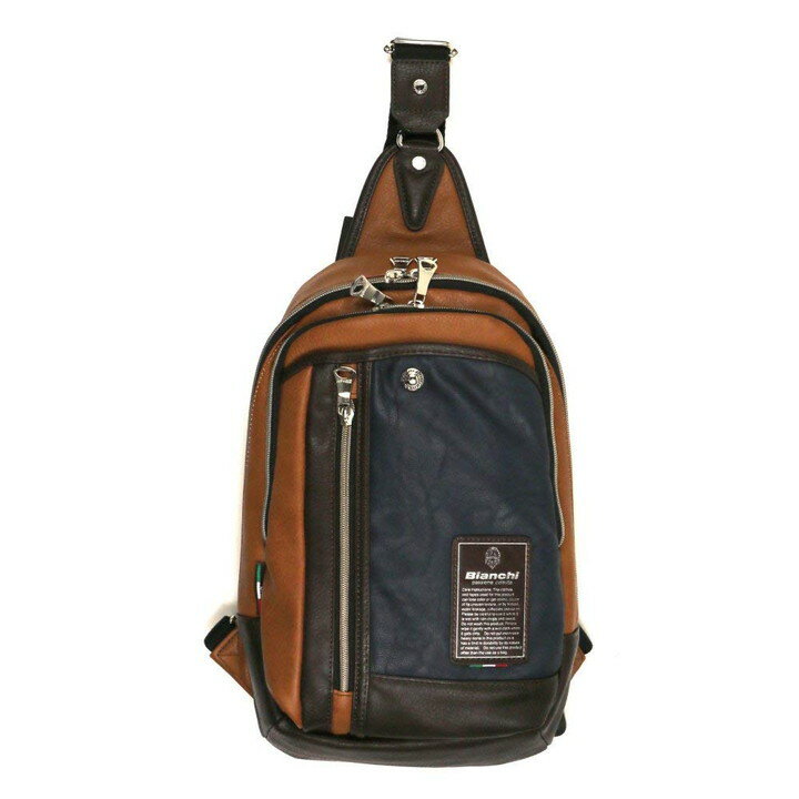 フェイクレザーにビアンキのロゴがあしらわれた付属パーツが高級感漂う仕上がりのボディバッグ。