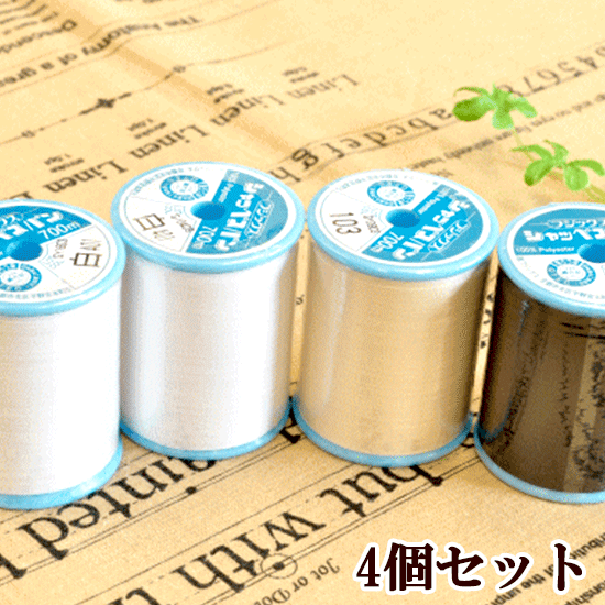 (例:1Mを5枚に分けて、1M・2Mを1枚ずつ、など)〜徳用シャッペスパンミシン糸700m〜定番の3色 黒(402)、生成り(103)、白(401)×2 お得な4本セット販売良く使う方の為に…お徳用な4本セットとしてベーシックな基本色のセットをご用意いたしました。