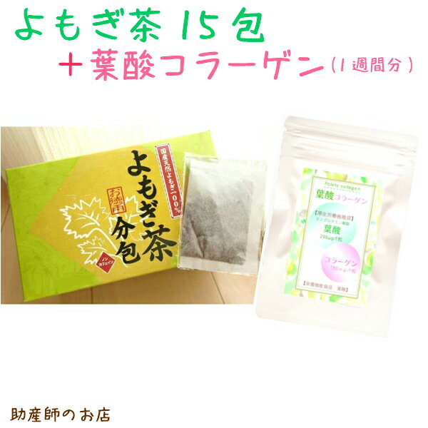 国産よもぎ茶15包-葉酸サプリ(1週間分)セット【100円お得】日本製 健康茶 お茶 よもぎ茶 送料無料メール便 身体に優しいお茶 妊婦 妊娠お祝い 出産祝い 肌荒れよもぎ茶 無農薬よもぎジェル ヨモギジェル 蓬ジェル クリスマス ギフト 年末 福袋