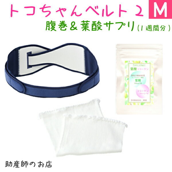 送料無料 トコちゃんベルト2M/腹巻/葉酸サプリ (1週間分)セット 【葉酸コラーゲン】厚生労働省推奨 の モノグルタミン酸 ベテラン助産師が考えたママに寄り添うシンプルな葉酸 コラーゲン サプリ 妊娠 授乳 葉酸 サプリ folate collagen 赤ちゃん 葉酸 子育て はぐくみ 葉酸