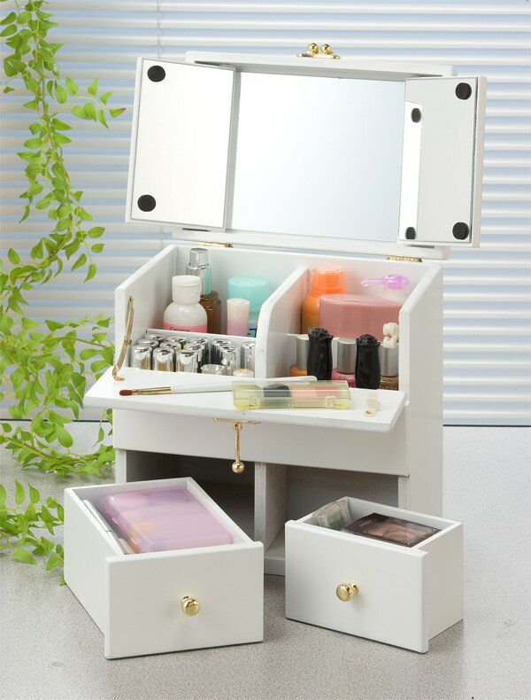 コンパクトメイクボックス 木製 大容量 鏡付き メイクボックス 大容量 コスメボックス 収納 ボックス コスメ収納 メークボックス 三面鏡 おしゃれ かわいい