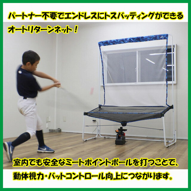 ◇FTM−401NET(トスマシンFTM−401は別売りです) ・パートナー不要でエンドレスにバッティング練習ができるオートリターンネット! ・直径40mmの、室内でも安全なミートポイントボールを打つことで、動体視力・バットコントロール向上につながります ・ネットの下にマシンをセットすることで、次々と発射されるミートポイントボールを打つことができます。